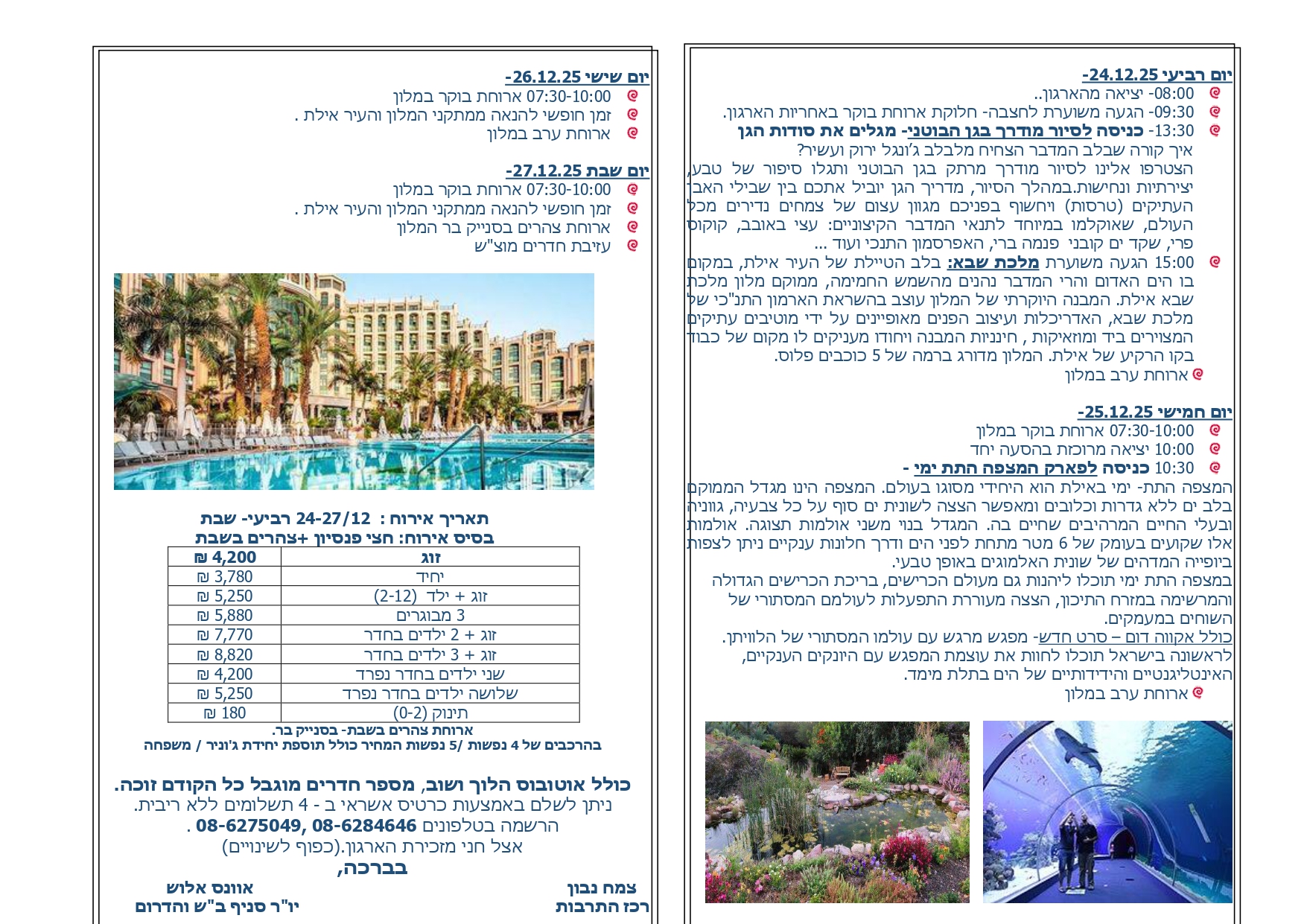 תאריכים: 24–27 בדצמבר 2025 (רביעי–שבת)